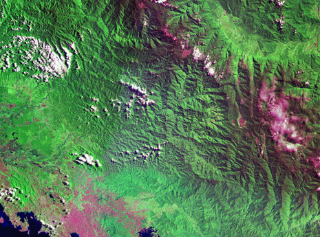 As well as satellite images, data to create DEM (Digital Elevation Models) is also widely available. This is a DEM of the area around the Kokoda Track in Papua New Guinea. Satellite images and DEM data can be combined.