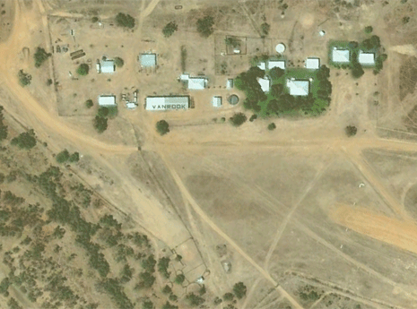Satellite imagery can be useful in remote areas to help draw maps of local infrastructure. This image shows the homestead and nearby buildings and fences on a remote cattle property.